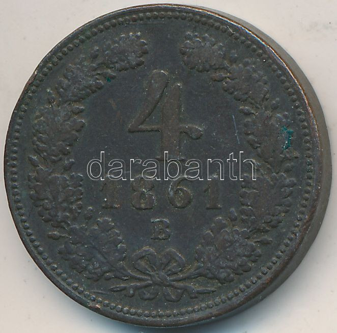 Beschreibung: 1861B 4Kr Cu T:2-,3 ph.