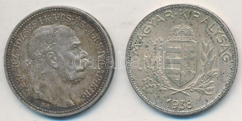 Beschreibung: 1915KB 1K Ag "Ferenc József + 1938. 1P Ag T:2,2-