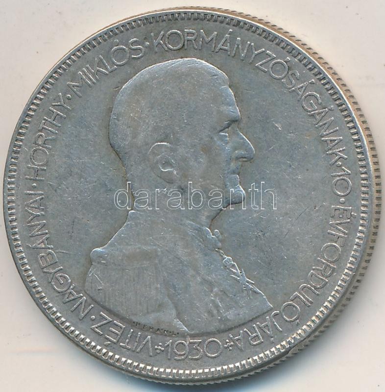 1930. 5P Ag "Horthy jobbra" T:3
