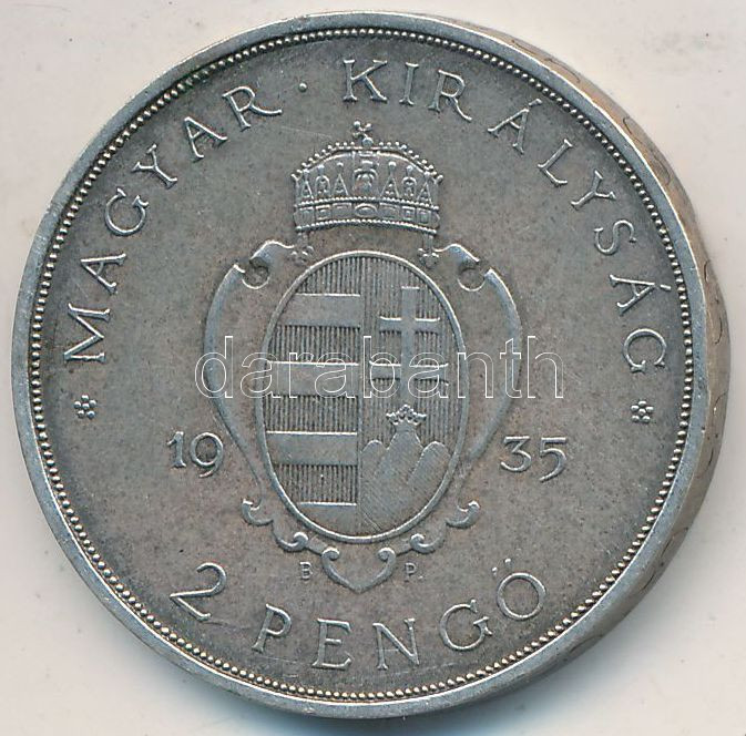 Adamo P7.1 https://www.darabanth.com/de/250-Fernauktion/250.0/Numismatik/Ungarische-Munzen~9/1935-2P-Ag-Pazmany-T2-2-ph--Adamo-P71~II1207973