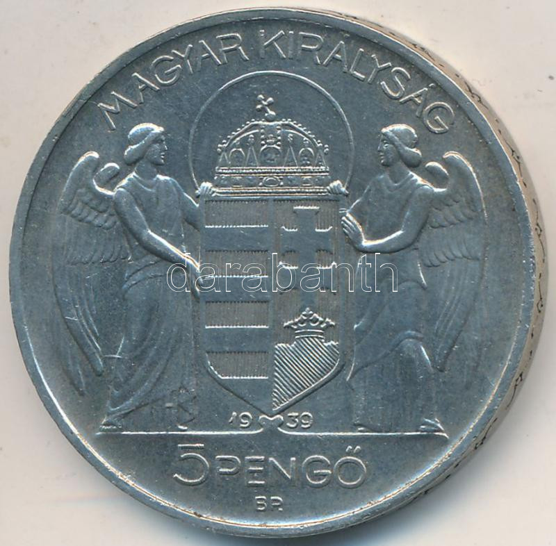 Beschreibung: 1939. 5P Ag "Horthy balra" T:2