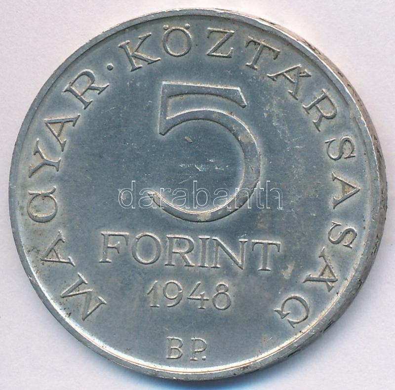 1948. 5Ft Ag "Petőfi" T:2,2- https://www.darabanth.com/de/250-Fernauktion/250.0/Numismatik/Ungarische-Munzen~9/1948-5Ft-Ag-Petofi-T2-2-~II1203881