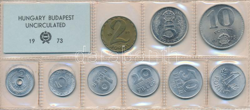 1973. 2f-10Ft 9db klf érmés forgalmi sor fóliatokban T:1 https://www.darabanth.com/de/250-Fernauktion/250.0/Numismatik/Ungarische-Munzen~9/1973-2f-10Ft-9db-klf-ermes-forgalmi-sor-foliatokban-T1~II1206435