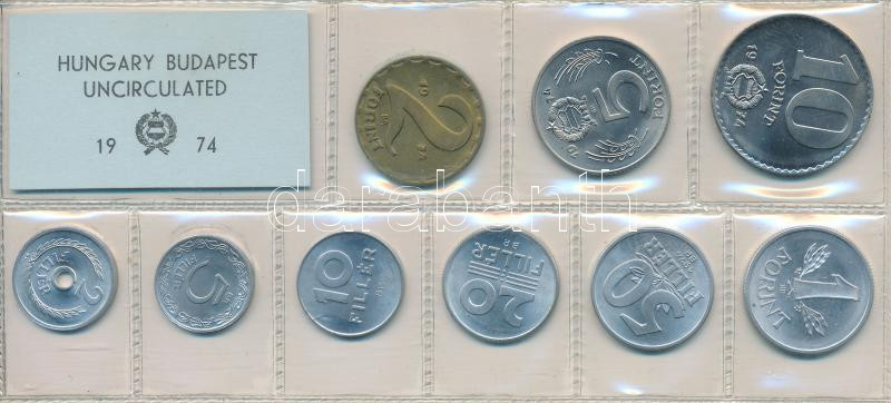 1974. 2f-10Ft 9db klf, érmés forgalmi sor fóliatokban T:1 https://www.darabanth.com/de/250-Fernauktion/250.0/Numismatik/Ungarische-Munzen~9/1974-2f-10Ft-9db-klf-ermes-forgalmi-sor-foliatokban-T1~II1206433