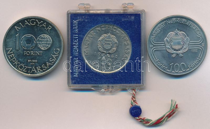 Beschreibung: 1980. 100Ft "Szovjet-magyar közös űrrepülés" + 1982. 100Ft "Labdarúgó VB 1982" eredeti tokban + 1985. 100Ft "Mexikói Labdarúgó VB" T:BU