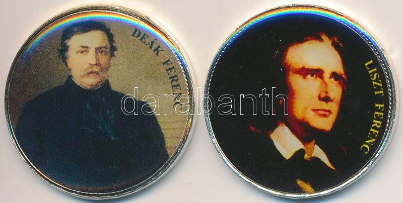 Beschreibung: DN 50Ft "Nagy Magyarok / Deák Ferenc, Liszt Ferenc" (2x) multicolor emlékérme sorozat, ezüstözött Cu-Ni, tanúsítvánnyal T:2