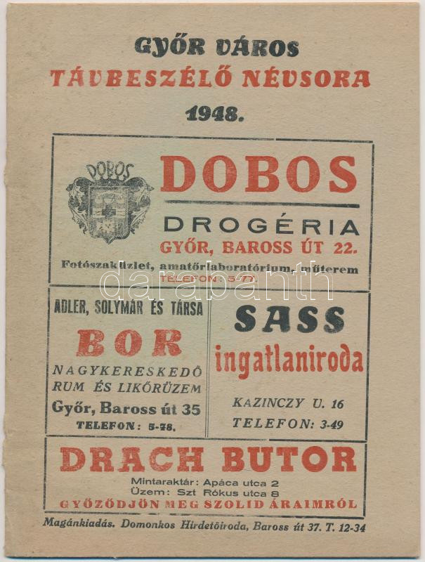 1948 Győr város távbeszélő névsora, pp.:28, 20x15cm https://www.darabanth.com/de/251-Fernauktion/251.0/Andere-Sammelgebiete/Drucksachen~600008/1948-Gyor-varos-tavbeszelo-nevsora-pp28-20x15cm~II1214223