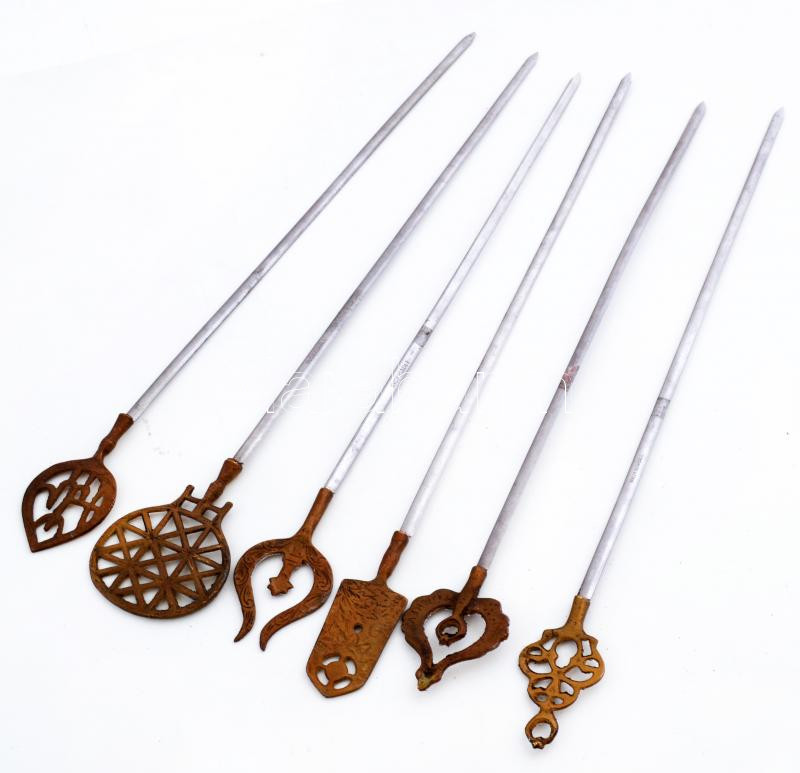 Beschreibung: 6 db keleti motívumos rézfejű nyárs, különböző hosszúságban
