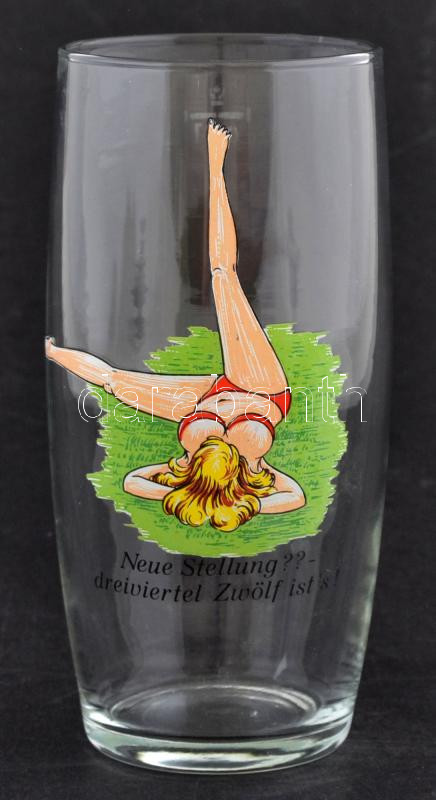Beschreibung: Nagyméretű pohár humoros felirattal, jelzés nélkül, hibátlan, 0,5 l, d: 7 cm