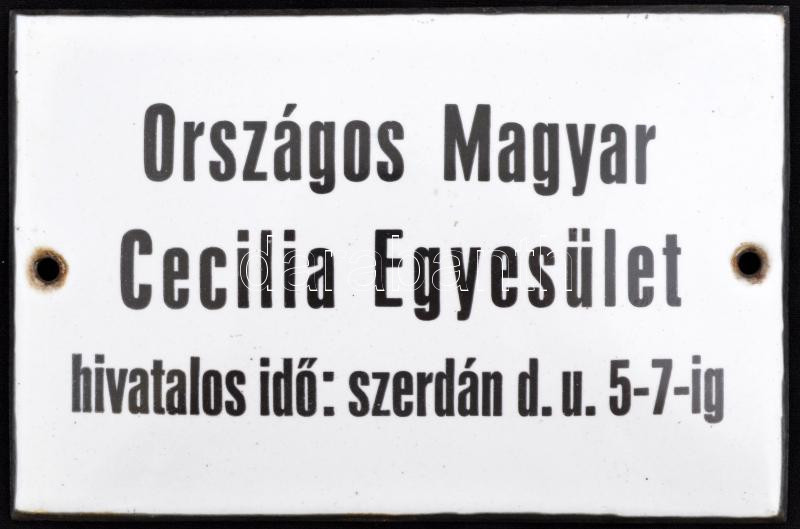 Zománc tábla "Országos Magyar Cecília Egyesület" felirattal,... https://www.darabanth.com/de/251-Fernauktion/251.0/Andere-Sammelgebiete/Flohmarkt~600017/Zomanc-tabla-Orszagos-Magyar-Cecilia-Egyesulet-felirattal-9-5C39715-cm~II1214094