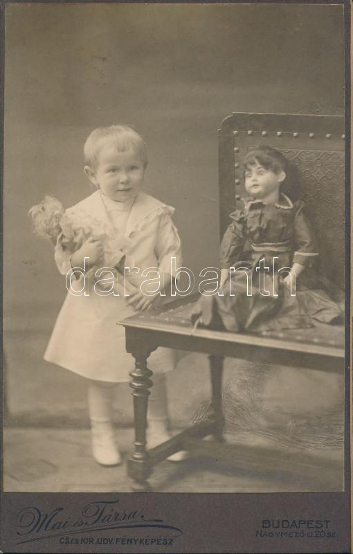 1911 Gyermek babákkal. Mai Manó és társai keményhátú fotója, 16x11 cm https://www.darabanth.com/de/251-Fernauktion/251.0/Andere-Sammelgebiete/Foto~600030/1911-Gyermek-babakkal-Mai-Mano-es-tarsai-kemenyhatu-fotoja-16x11-cm~II1212459