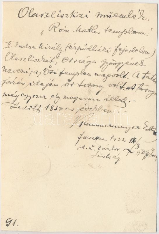 1932 Olaszliszka, Római katolikus templom, hátoldalon feliratozva, 11x... https://www.darabanth.com/de/251-Fernauktion/251.0/Andere-Sammelgebiete/Foto~600030/1932-Olaszliszka-Romai-katolikus-templom-hatoldalon-feliratozva-11x7-5-cm~II1211098