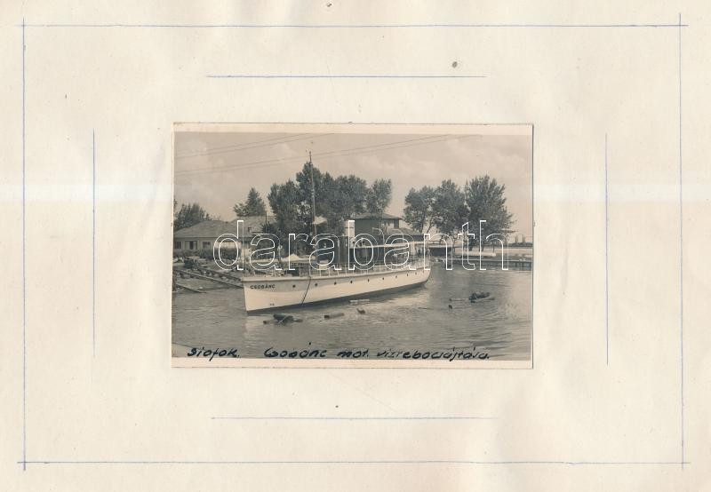 Beschreibung: 1937 Siófok a Csobánc motoros vízrebocsájtása. Fotó kartonlapon 13x9 cm
