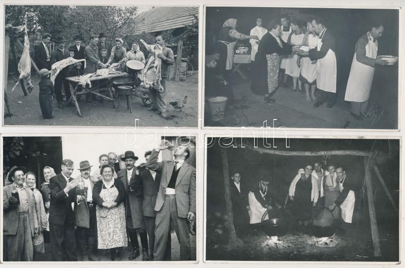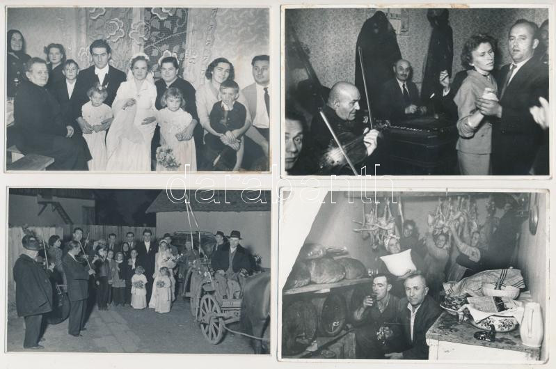 1958. október 25. Tiszavölgyi József (1909-?): Sütnek-főznek, esznek-isznak, vígan élnek, lakodalmi képriport, 10 db pecséttel jelzett vintage fotó, 9x14 cm