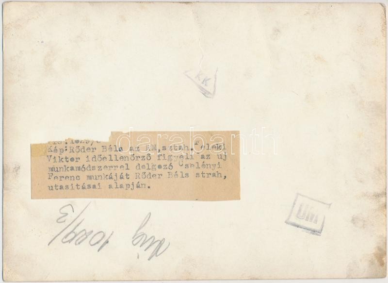 Beschreibung: Esztergálás, hátoldalon feliratozott fotó, 13x18 cm