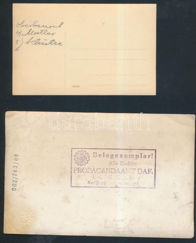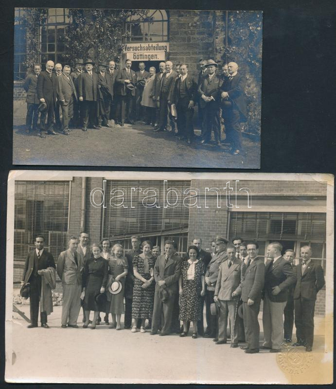 Beschreibung: Göttingeni kutatóintézet tudósai . Két fotó, egyik en horogkeresztes szárazpecsét, valamint hátoldali pecsét / Scientist of Göttingen 2 photos