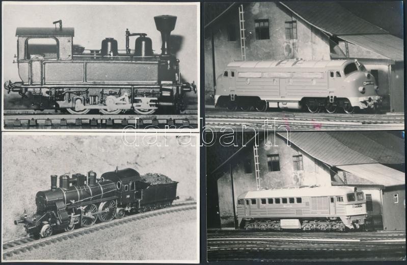 Beschreibung: Vasúti modellek fotói, 16 db, 5x17 és 16x11 cm közötti méretekben