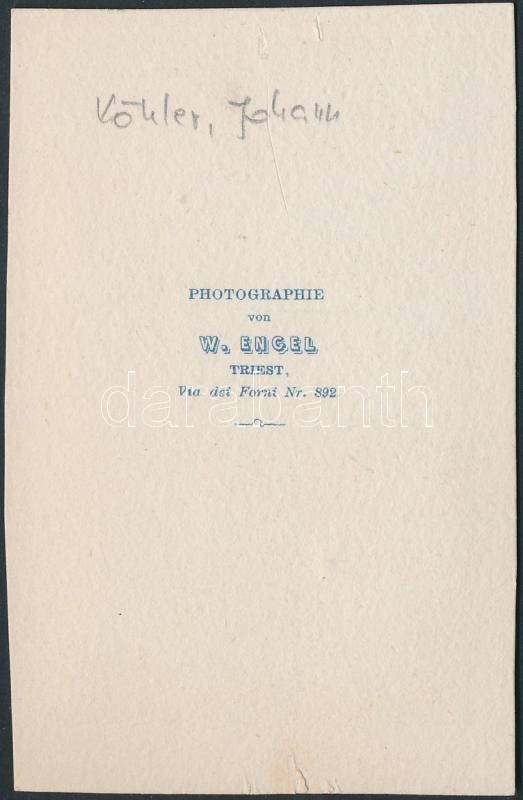 Beschreibung: cca 1880-1900 Keményhátú kabinetfotó "Köhler, Johann" felirattal, W. Engel trieszti műterméből, 10x6cm