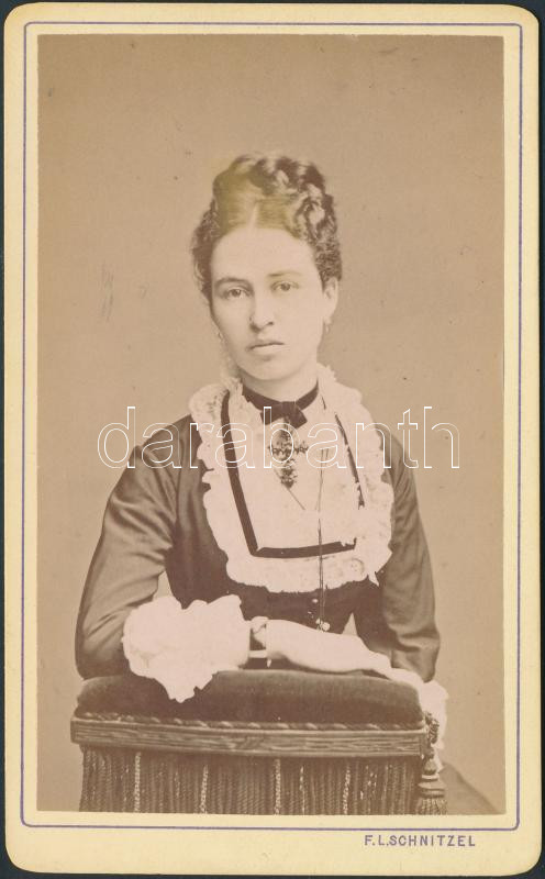 cca 1890 Hölgyportré, Schnitzel pozsonyi műterméből, keményhátú fotó, ... https://www.darabanth.com/de/251-Fernauktion/251.0/Andere-Sammelgebiete/Foto~600030/cca-1890-Holgyportre-Schnitzel-pozsonyi-mutermebol-kemenyhatu-foto-11x6-5-cm~II1211653