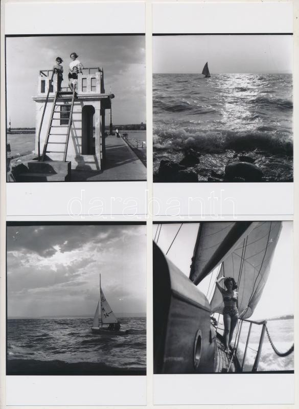 Beschreibung: cca 1930 Balatoni életképek, korabeli negatívokról készült mai nagyítások, 7 db fotó, 13x18 cm és 10x10 cm-es kép 15x10 cm-es fotópapíron
