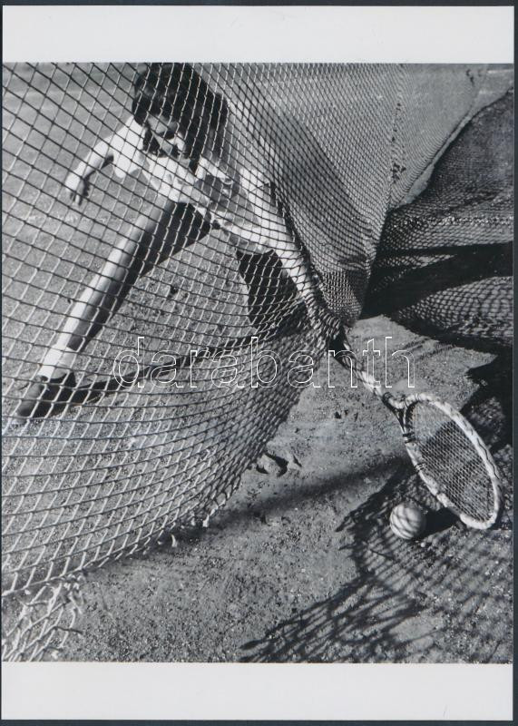 Beschreibung: cca 1935 Teniszparti, Szabó Lajos újpesti fotográfus vintage fotóművészeti alkotásáról készült modern műtárgymásolat, 15x13 cm