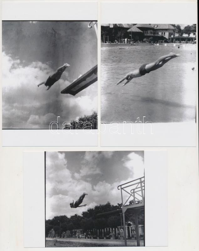 Beschreibung: cca 1938 Ugrás a mély vízbe, Thöresz Dezső (1902-1963) hagyatékában őrzött negatívokról készült 3 db mai modern nagyítás, 15x10 cm-es fotópapírra
