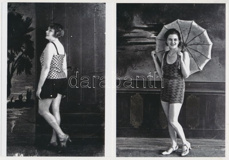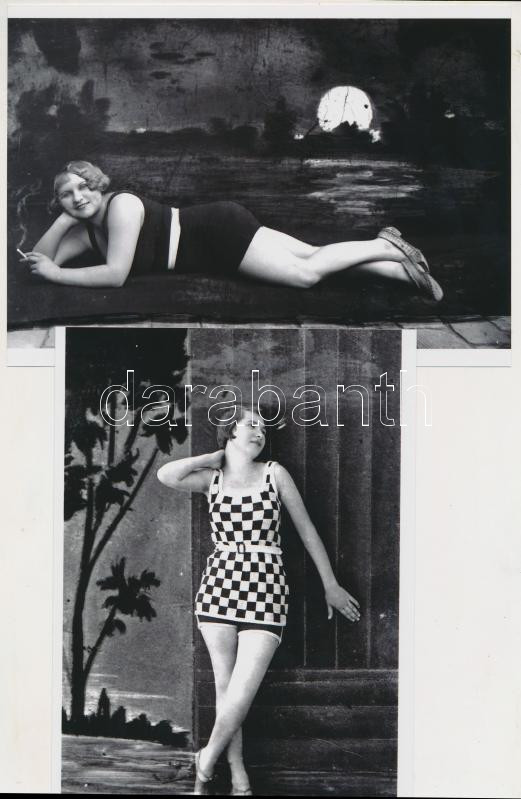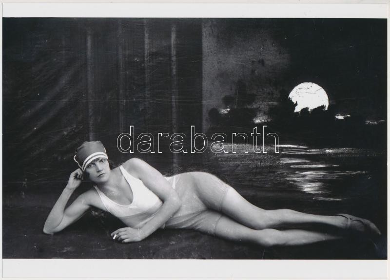 cca 1940 Csongrád, vízparti illúziók Hajdú János csongrádi fényképész üveglemezre festett hátterei előtt, 5 db vintage üveglemzről készült modern nagyítás, 13x18 cm