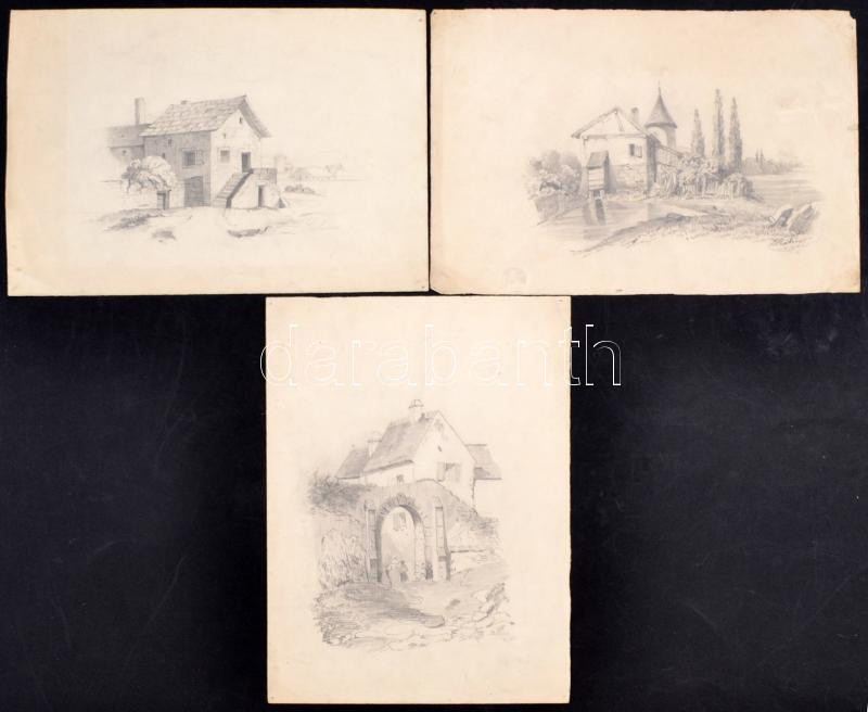 Beschreibung: 1861-62 Lechner jelzéssel: 3db grafika, papír,20x29cm