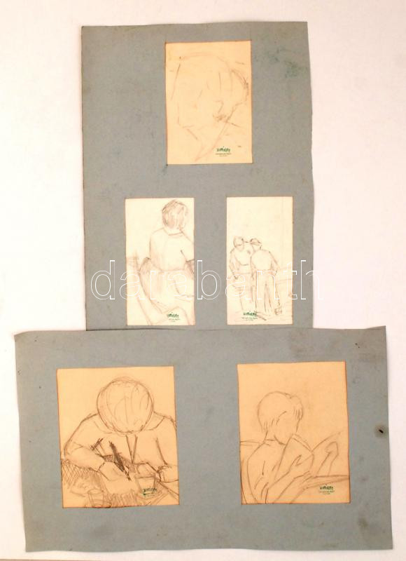 Beschreibung: Hornyánszky hagyatéki pecséttel, 5 db ceruza rajz, papír, 17×9-20×16 cm