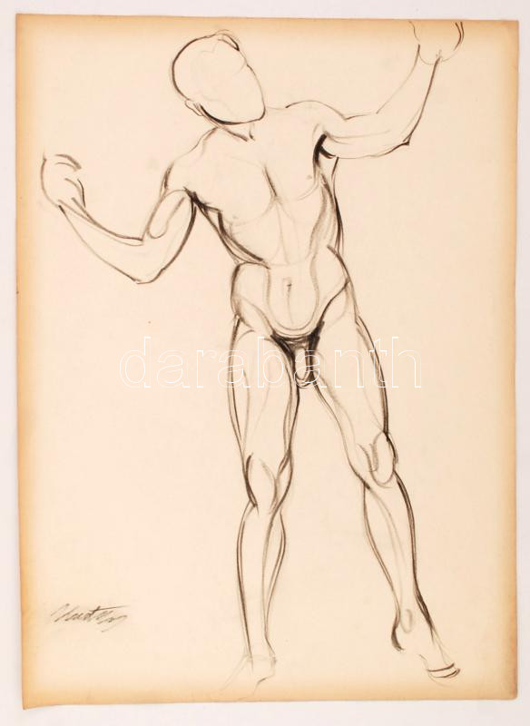 Beschreibung: Kmetty jelzéssel: Tanulmány rajz (férfi akt). Szén, papír, 60×40 cm