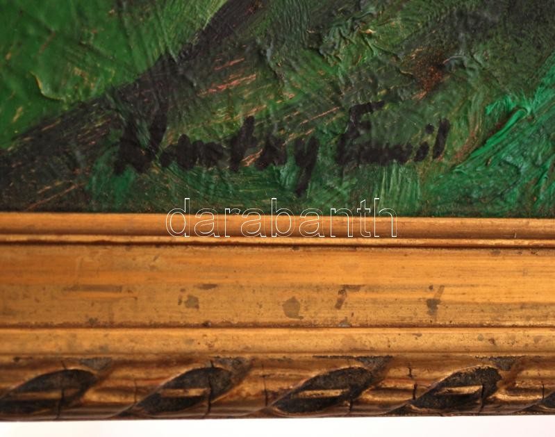 Beschreibung: Novotny jelzéssel: Tájkép. Olaj, farost, keretben, 31×44 cm