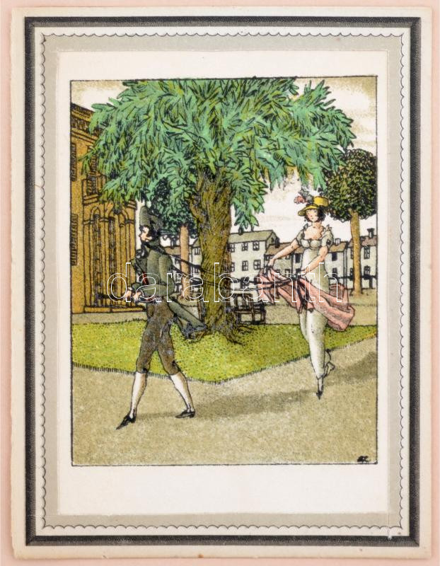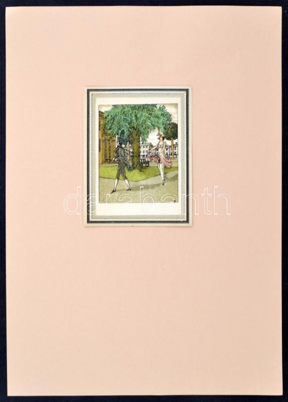 Beschreibung: cca 1910 Fritzi Löw (1892-1975): Séta, színes litho, dúcon jelzett, papír, 10x8cm