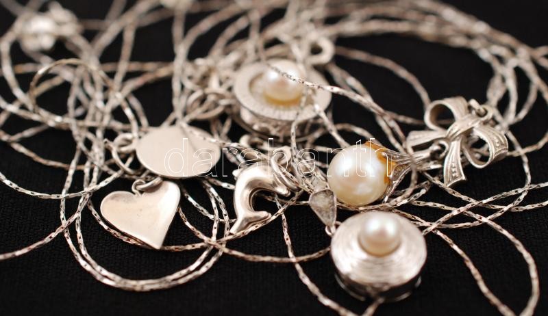 6 db ezüst(Ag) nyaklánc, kis medálokkal, jelzettek, br: 12,4 g https://www.darabanth.com/de/251-Fernauktion/251.0/Andere-Sammelgebiete/Juwelen~600041/6-db-ezustAg-nyaklanc-kis-medalokkal-jelzettek-br-12-4-g~II1213664