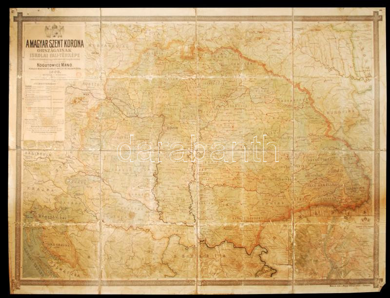 1909 Kogutowitz Manó: A Magyar Szent Korona országainak iskolai fali t... https://www.darabanth.com/de/251-Fernauktion/251.0/Andere-Sammelgebiete/Landkarten~600006/1909-Kogutowitz-Mano-A-Magyar-Szent-Korona-orszagainak-iskolai-fali-terkepe-Erosen-megviselt-~II1213779