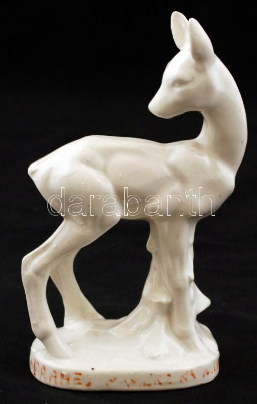 Beschreibung: Őzike, fehér mázas, jelzés nélkül, olvashatatlan felirattal, kopott, m:14,5 cm