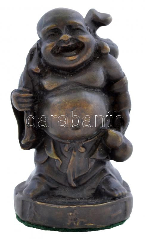 Nevető Buddha, bronz, jelzett, m:9 cm