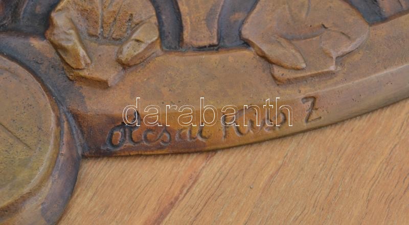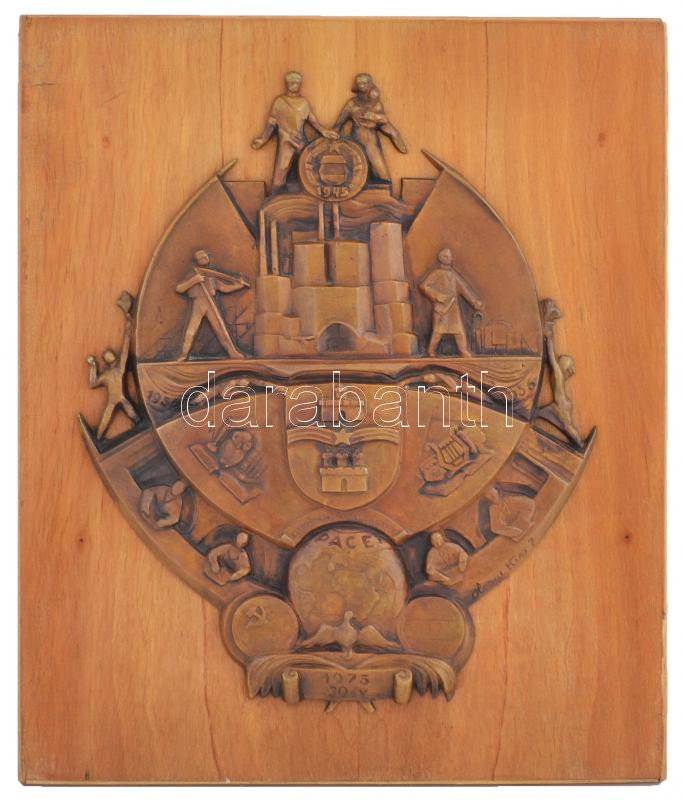 Olcsai Kiss Zoltán (1895-1981): 30 év az európai biztonságért 1975, bronz plakett, fa, jelzett, 40×34 cm