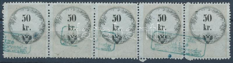 Beschreibung: 50kr okmánybélyeg ötöscsík