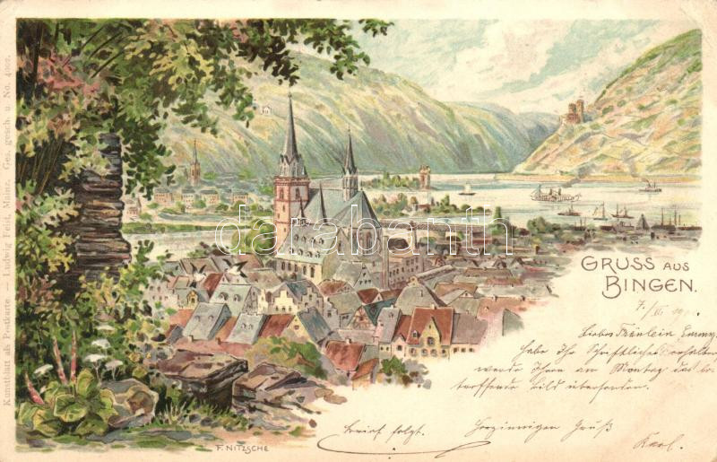 Bingen am Rhein, Ludwig Feist No. 4002. litho s: F. Nitzsche (EK) https://www.darabanth.com/de/251-Fernauktion/251.0/Ansichtskarten/Deutschland~400100/Bingen-am-Rhein-Ludwig-Feist-No-4002-litho-s-F-Nitzsche-EK~II1212939