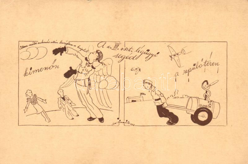 Beschreibung: 'A c. III. osztályú légügyi segéd' Humoros magyar légierős grafikai képeslap / WWII-era Hungarian airforce humorous postcard s: Martinovits