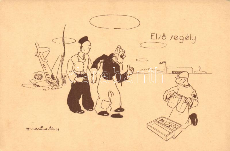 'Első segély' Humoros magyar légierős grafikai képeslap / WW... https://www.darabanth.com/de/251-Fernauktion/251.0/Ansichtskarten/Militarflugwesen~400066/Elso-segely-Humoros-magyar-legieros-grafikai-kepeslap-WWII-era-Hungarian-airforce-humorous-~II1212567