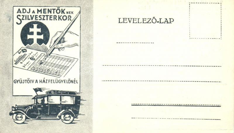 Adj a mentőknek szilveszterkor / New Years Ever charity, ambulance https://www.darabanth.com/de/251-Fernauktion/251.0/Ansichtskarten/Propaganda~400044/Adj-a-mentoknek-szilveszterkor-New-Years-Ever-charity-ambulance~II1210547