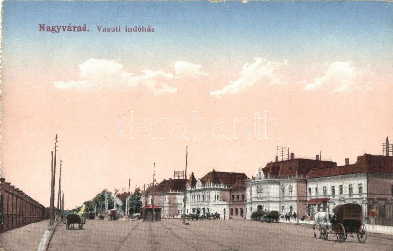 Nagyvárad, Oradea; Vasúti indóház / railway station https://www.darabanth.com/de/251-Fernauktion/251.0/Ansichtskarten/Siebenburgen~400006/Nagyvarad-Oradea-Vasuti-indohaz-railway-station~II1209317