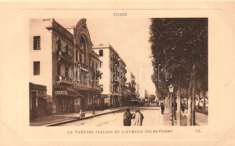 Tunis, Italian Theatre, Jules-Ferry Avenue, pharmacy https://www.darabanth.com/de/251-Fernauktion/251.0/Ansichtskarten/Tunesien~400116/Tunis-Italian-Theatre-Jules-Ferry-Avenue-pharmacy~II1211045