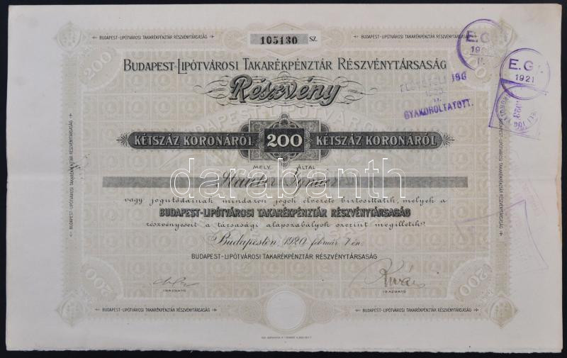 Budapest 1895. "Budapest - Lipótvárosi Takarékpénztár Részvénytár... https://www.darabanth.com/de/251-Fernauktion/251.0/Numismatik/Aktien-und-Tickets~5/Budapest-1895-Budapest--Lipotvarosi-Takarekpenztar-Reszvenytarsasag-reszvenye-200K-rC3~II1209772