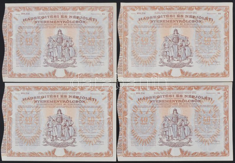 Beschreibung: Budapest 1917. "Hadsegítési és Népjóléti nyereménykölcsön" nyereménykötvény 40K-ról, szárazpecséttel (4x) sorszámkövetők T:II