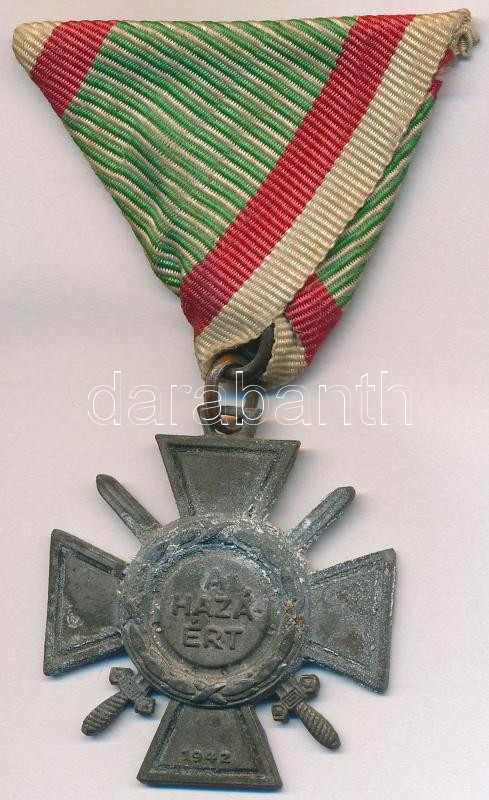 Hungary 1942. "Hungarian Fire Cross 1st class" war metal decoration with ribbon C:VF