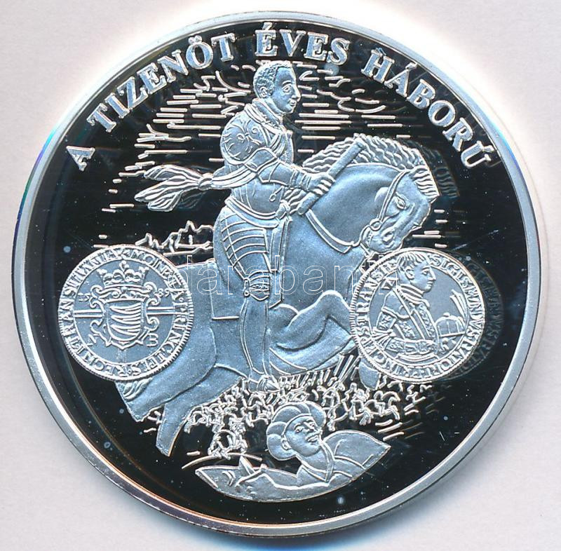Beschreibung: DN "A magyar pénz krónikája - A tizenöt éves háború" Ag emlékérem tanúsítvánnyal (20g/0.999/38,61mm) T:PP fo., kis oxidáció