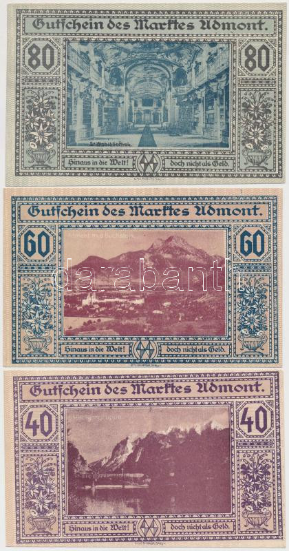 Ausztria / Donautal 1920. 30h (6xklf) + Admont 1920. 40h + 60h + 80h T... https://www.darabanth.com/de/251-Fernauktion/251.0/Numismatik/Notgelden~6/Ausztria-Donautal-1920-30h-6xklf-plus-Admont-1920-40h-plus-60h-plus-80h-TI-I-II--Austria-Donautal-1~II1209397