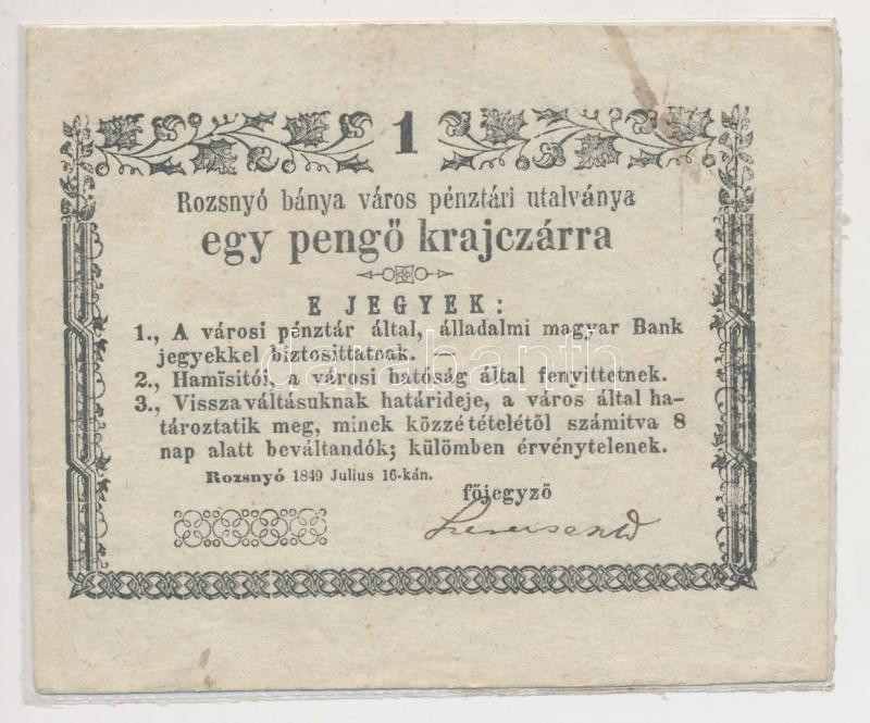 Rozsnyó 1849. 1kr lezárt fóliában T:III https://www.darabanth.com/de/251-Fernauktion/251.0/Numismatik/Notgelden~6/Rozsnyo-1849-1kr-lezart-foliaban-TIII~II1211506